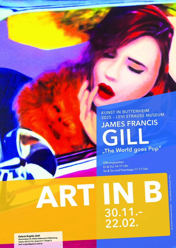 Im Rahmen der Reihe „ART in B – Kunst in Buttenheim“ wird im Winter 2025/2026 mit den Werken von James Francis Gill wieder eine interessante Ausstellung im Levi Strauss Museum zu sehen sein. Gemeinsam mit Andy Warhol und Roy Lichtenstein ist James Francis Gill Mitbegründer der amerikanischen Pop Art und einer der letzten noch lebenden… James Francis Gill “ The World goes Pop“ weiterlesen